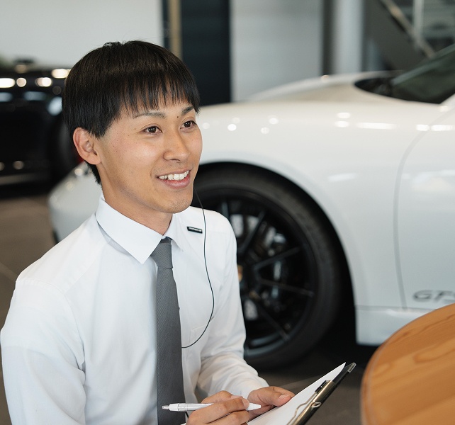 魅力をお伝えするセールスにとって、一番の武器は「好き」だと私は思います。スポーツカーファンが一度は憧れるブランドを扱えることに誇りをもち、ポルシェの魅力をより多くの方にお伝えできるよう、日々精進しております。